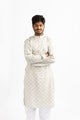 Embrace elegance with this floral print kurta, featuring a delicate pattern in soothing pastel shades. The subtle green trim adds a touch of sophistication, while the classic design ensures a comfortable fit. Ideal for festive occasions or casual wear, this kurta pairs beautifully with white trousers or churidar. Crafted from breathable fabric, it's perfect for staying stylish and cool