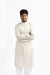 This sophisticated off-white kurta is a must-have for any wardrobe. Featuring subtle geometric patterns and a classic design, it's perfect for festive occasions or casual outings. The lightweight fabric ensures comfort while the mandarin collar and button-down front add a touch of refinement. Pair it with traditional churidar pants or modern trousers for a versatile and stylish look